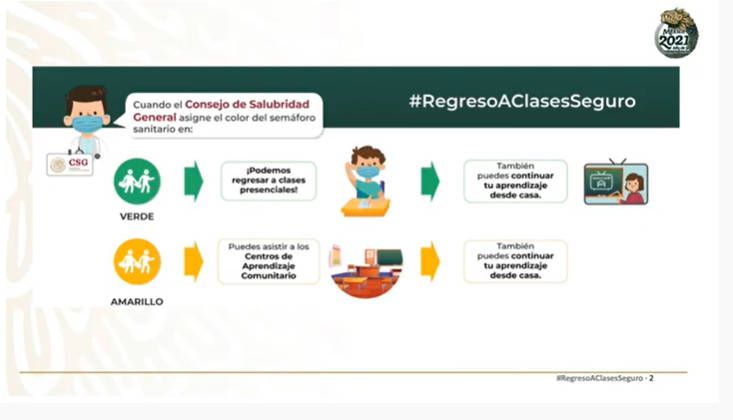 “Para las entidades donde se puede regresar a clases se ha elaborado un protocolo. El establecimiento de comités participativos de salud escolar, se van a dedicar a hacer la limpieza de la escuela y establecer tres filtros de corresponsabilidad: en la casa, escuela y salón de clases”, explicó el secretario durante la conferencia matutina del presidente Andrés Manuel López Obrador.