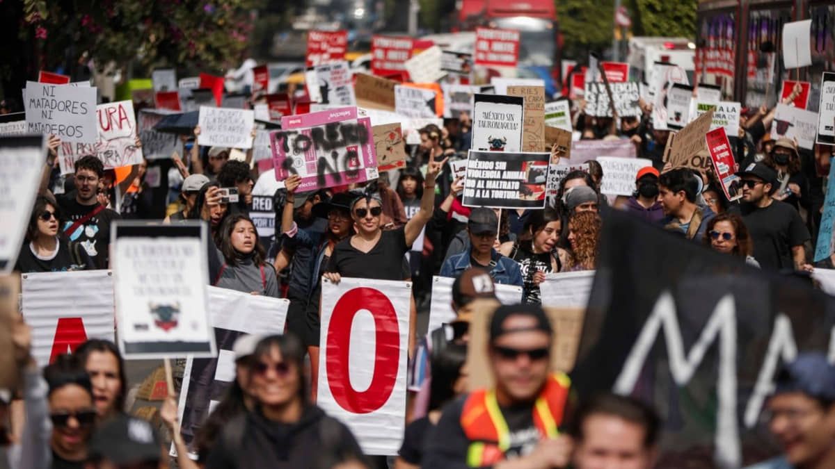 La movilización en contra de las corridas de toros salió al mediodía desde la Glorieta de Insurgentes hasta la Plaza México, y realizó una protesta a las puertas de este recinto a la voz de A la voz de “¡Torero criminal, al código penal!”, “¡Si hay tortura, no es cultura!”, “¡No más muertes de toros inocentes!” y “¡México sin tauromaquia!”.