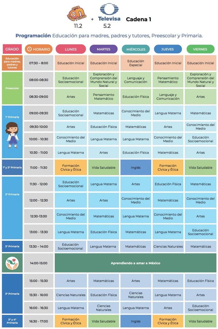 Las clases para madres, padres o tutores, así como preescolar y primaria serán transmitidas a través de Canal Once (frecuencia 11.2), Televisa (frecuencia 5.2) y Cadena 1.
