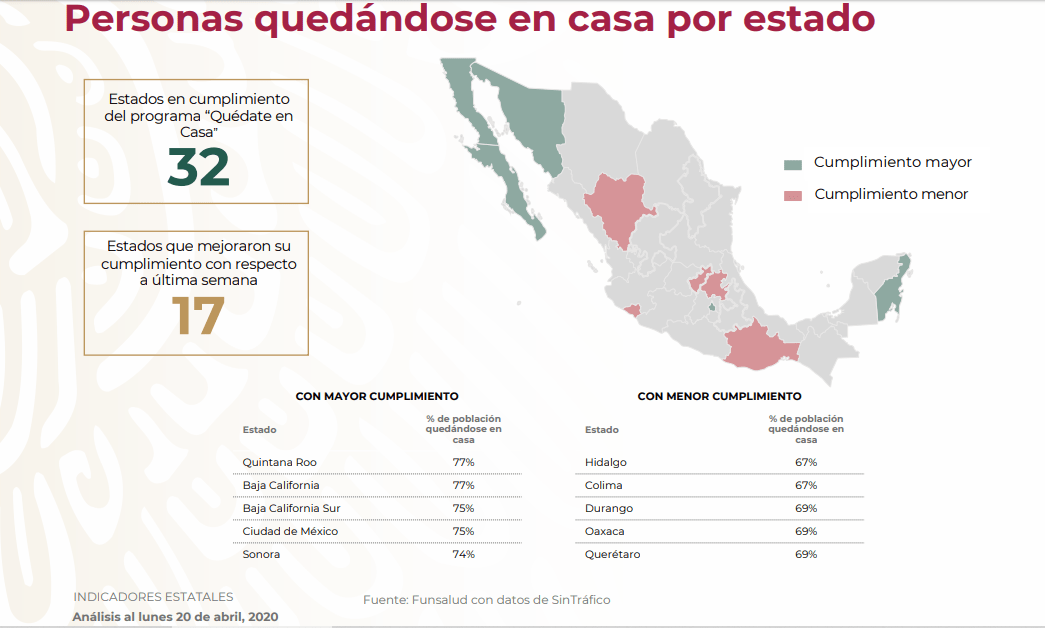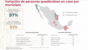 En la información emitida por el gobierno,  también se puede ver que el 51% de municipios y 17 estados del país mejoraron su cumplimiento e mejoraron su cumplimiento con respecto a última semana.