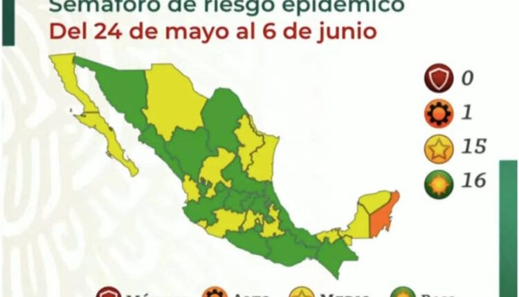 La noche de este viernes 21 de mayo, las autoridades de Salud actualizaronel semáforo epidemiológico para los próximos 15 días. Un total de 16 estados ya están en verde, 15 en amarillo y solo uno en naranja por COVID-19.