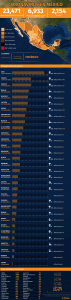 Por entidad federativa, la Ciudad de México continúa registrando el número más alto de contagios 6,417 casos, seguido del Estado de México (3,893), Baja California (1,660), Tabasco (1,196), Sinaloa (1,119) y Quintana Roo (911).