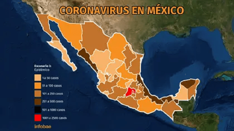 De acuerdo con datos de la Secretaría de Salud, seis estados tienen entre 1 y 50 casos activos de coronavirus; siete tienen entre 51 y 100; hay 13 estados con entre 101 y 250 pacientes y cuatro con entre 251 y 500.