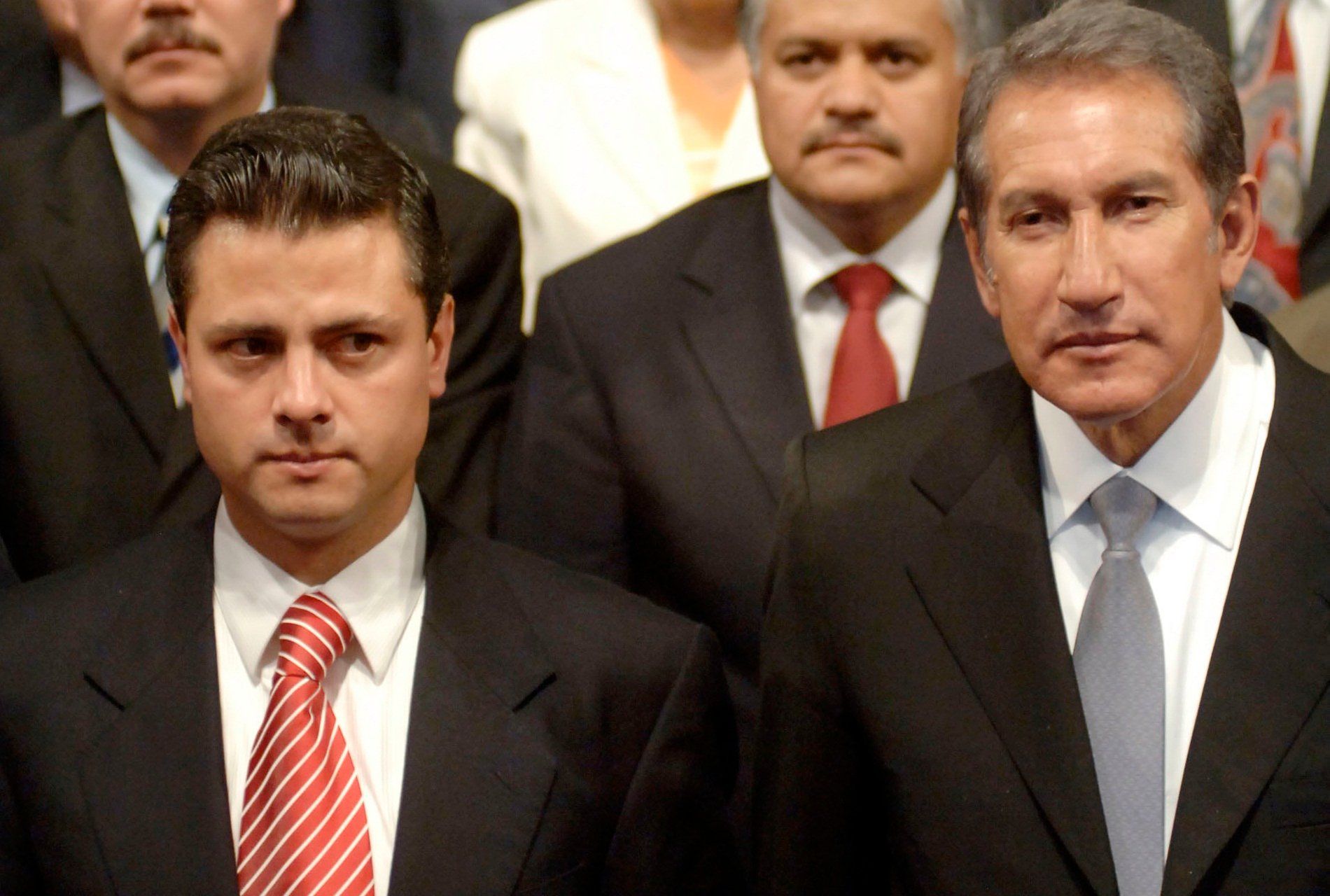 Los ex gobernadores mexiquenses Alfredo de Mazo González –quien falleció el 10 de enero pasado–, Ignacio Pichardo Pagaza, Emilio Chuayffet Chemor, Arturo Montiel Rojas y Alfredo Baranda García. Foto: Cuartoscuro