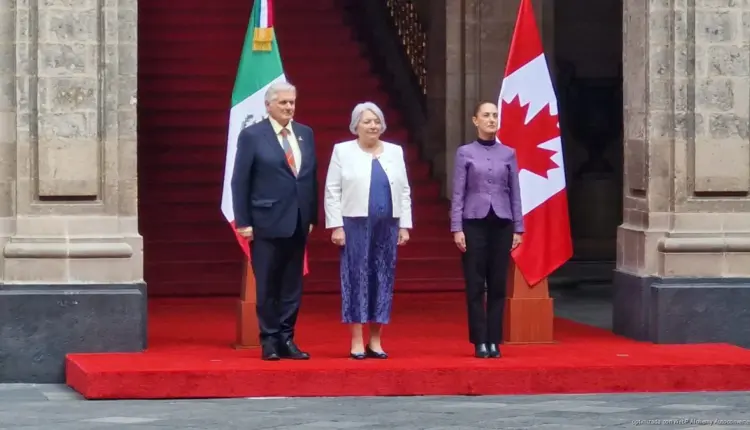 Tras los honores protocolarios, ambas funcionarias sostuvieron una reunión privada en Palacio Nacional, como parte de la agenda oficial de la visita de la gobernadora general canadiense a México.