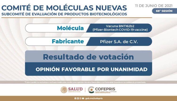El Comité de Moléculas Nuevas de la Comisión Federal para la Protección contra Riesgos Sanitarios (Cofepris) recomendó ampliar el uso de emergencia en la aplicación de la vacuna contra covid-19 a menores a partir de los 12 años con la dosis desarrollada por Pfizer.