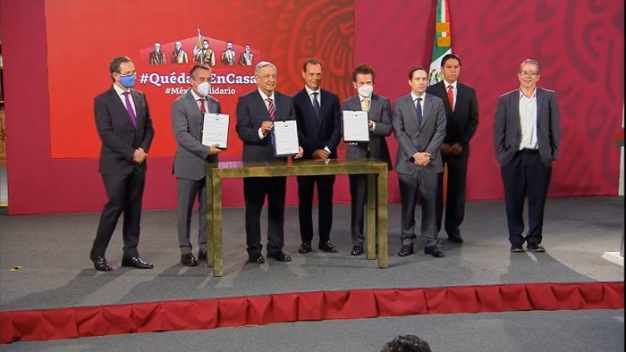 “Hoy el presidente López Obrador encabeza la firma de un acuerdo de concertación con cuatro televisoras nacionales: Televisa, TV Azteca, Imagen y Milenio, para regresar a clases con un esquema robusto oficial, válido, que dará servicio a 30 millones de estudiantes de 26 grados escolares”, detalló Esteban Moctezuma, titular de la Secretaría de Educación Pública.