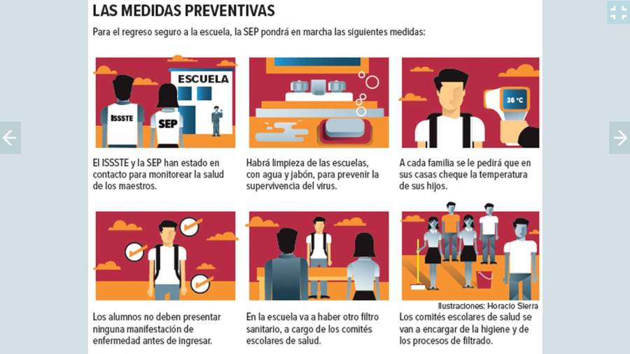 “El primer gran filtro serán las familias. Le vamos a pedir a las familias que antes de dejar a sus hijos en la escuela chequen ciertos signos, la temperatura, que no tengan ninguna manifestación de enfermedad, para que lleguen é la escuela y en la escuela habrá otro filtro sanitario de la propia escuela”, expuso Moctezuma.