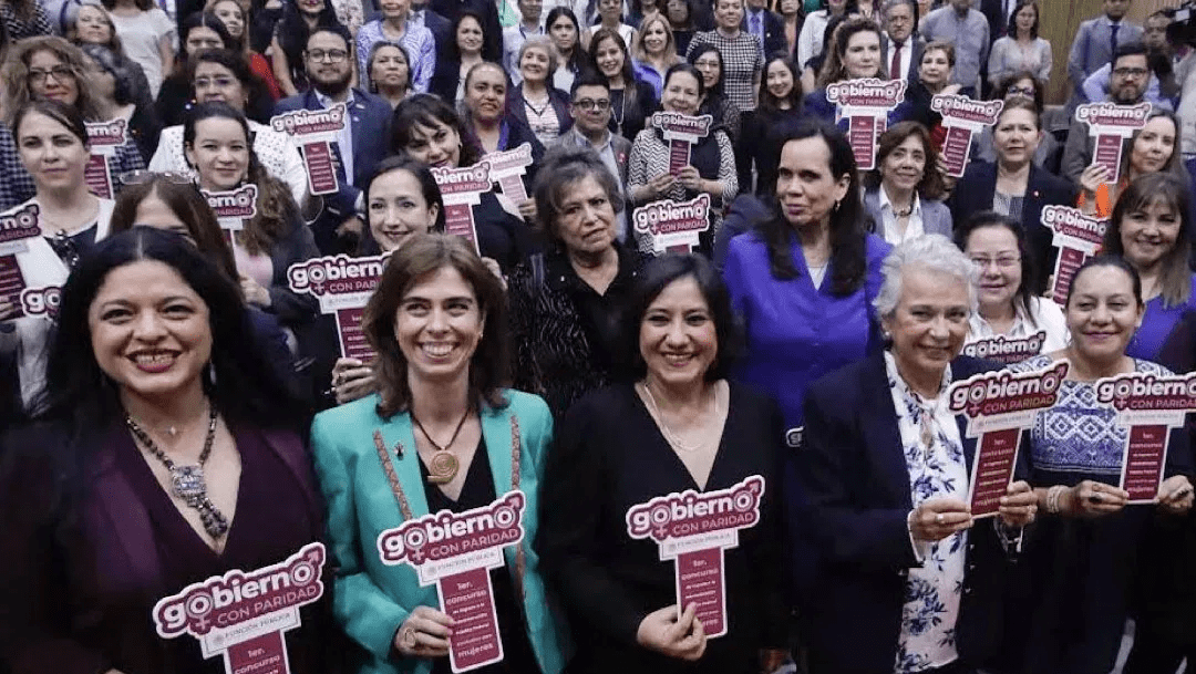 Para muestra basta un botón: aquí está un gabinete paritario por primera vez en la historia de nuestro país. Aquí estamos todas juntas. Nunca antes, nunca antes habíamos tenido esta conformación e integración de un Gabinete”, dijo Olga Sanchez Cordero, secretaria de Gobernación.