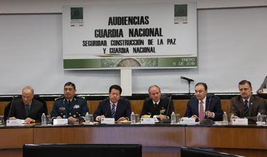 Durante su intervención en la mesa 8 “Seguridad, construcción de la paz y Guardia Nacional”, el Dr. Alfonso Durazo expresó que el presidente de la República “transmite por mi conducto la necesidad de replantear los términos del diseño original propuestos para la Guardia Nacional, mediante las modificaciones constitucionales que esta Cámara de Diputados estime pertinentes para ubicar a este ente administrativo en el ámbito civil, dependiente de la Secretaría de Seguridad y Protección Ciudadana”.