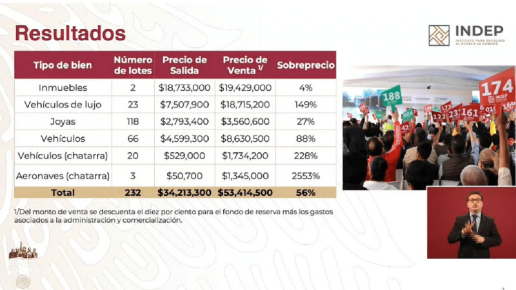 Ricardo Rodríguez Vargas, director del Instituto para Devolverle al Pueblo lo Robado, dio a conocer que la subasta de este domingo 9 de marzo fue una de las más exitosas, toda vez que se recaudaron 53 millones de pesos.