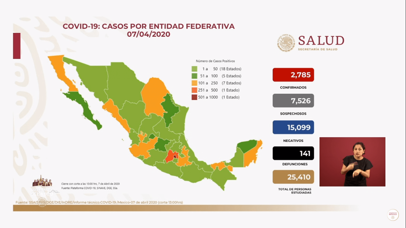 Autoridades de la Secretaría de Salud federal (Ssa) informaron en conferencia de prensa que el número de casos confirmados de la nueva cepa de coronavirus Covid-19 aumentó a 2,785 en México.