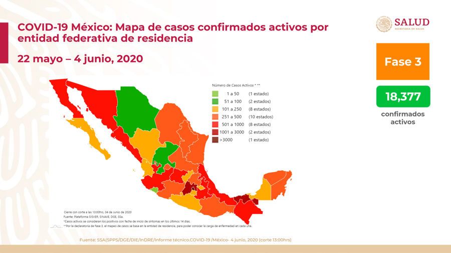 La Ciudad de México, Tabasco, Aguascalientes, Sinaloa y Quintana Roo, son las demarcaciones que cuentan con la mayor incidencia de casos activos.