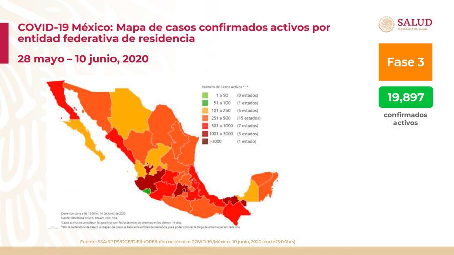 En conferencia desde Palacio Nacional, José Luis Alomía, director de Epidemiología de la Secretaría de Salud, indicó que de los casos confirmados, 19 mil 897 son la pandemia activa por haber presentado síntomas en los últimos 14 días.