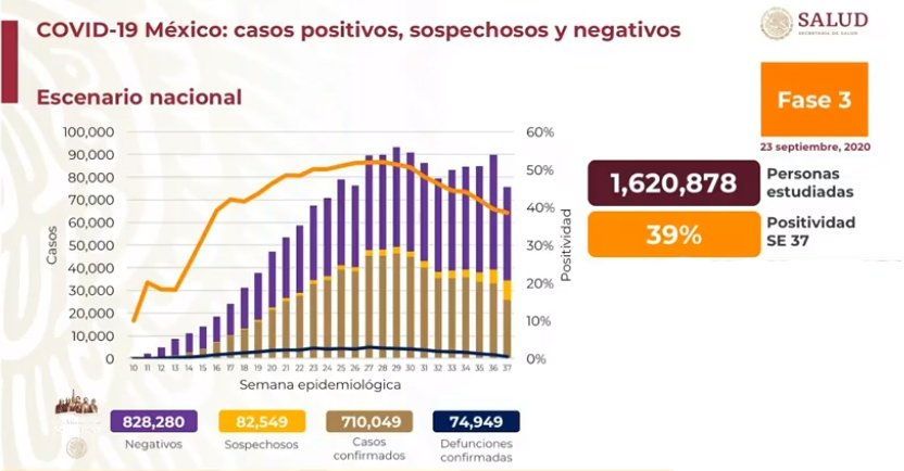 El director general de Epidemiología, José Luis Alomía Zegarra, informó que en México suman 74 mil 949 muertes, 601 más que un día antes y un millón 620 mil 878 personas estudiadas por Covid 19.