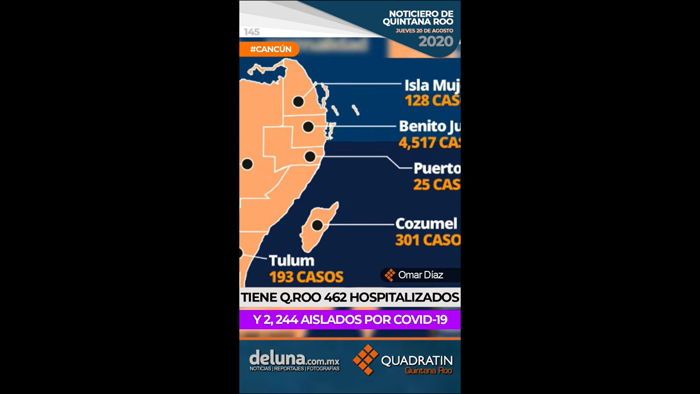 -Tiene Quintana Roo 462 hospitalizados por Covid 19 y 2,244 aislados.