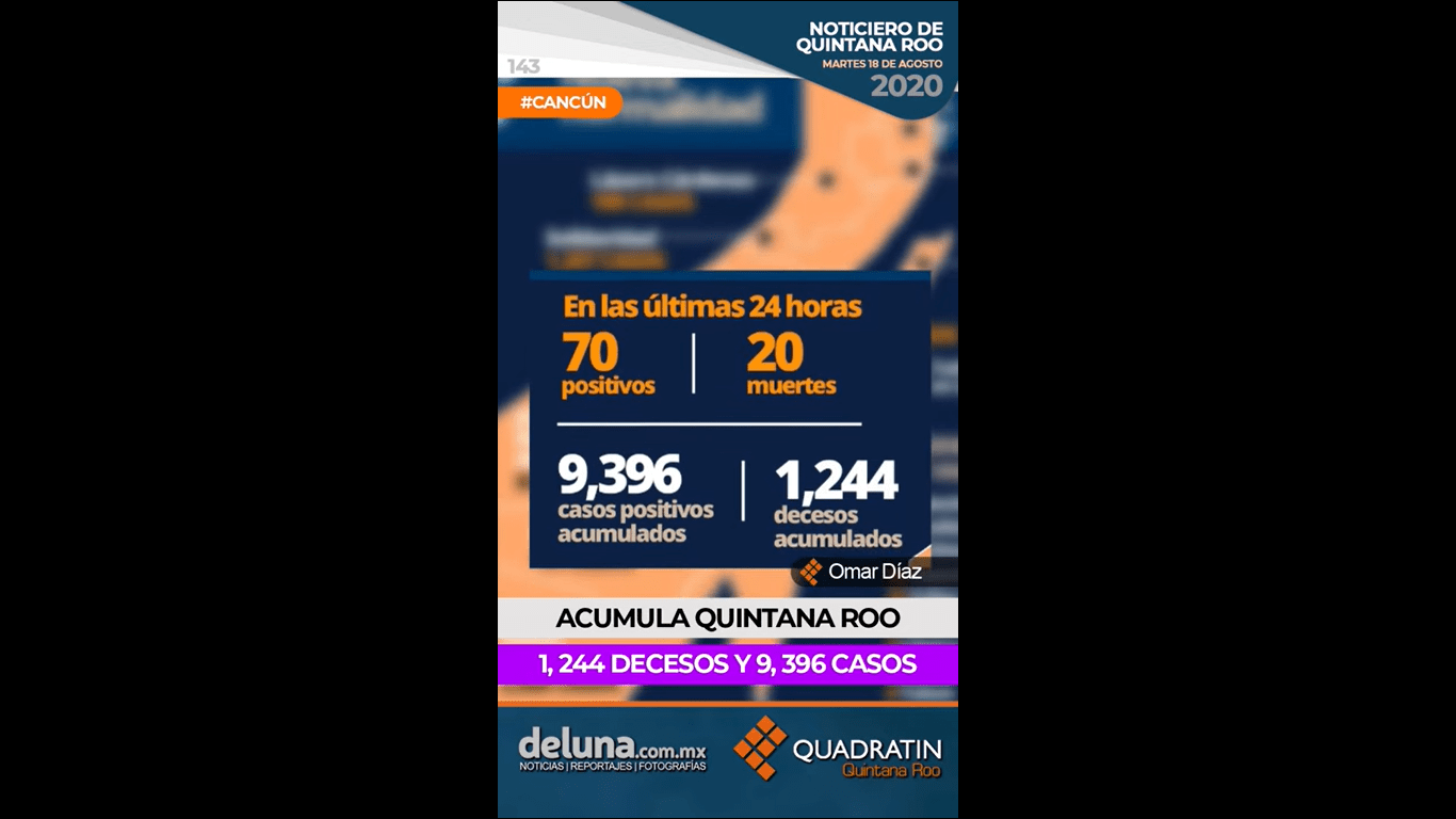 -Acumula Quintana Roo 1,244 decesos por Covid 19 y 9,396 positivos.
