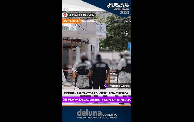 -Disparan asaltantes a policías en zona turística de Playa del Carmen y son detenidos.