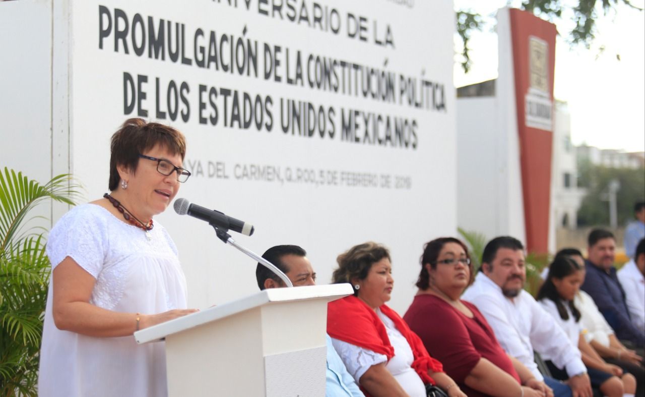 En el marco de la conmemoración del 102 Aniversario de la Promulgación de la Constitución Mexicana, la presidenta de Solidaridad, Laura Beristain Navarrete, ratificó su compromiso de garantizar la tranquilidad de las familias al reconocer que “hay dificultades y las estamos atendiendo. La seguridad de cualquier sociedad, no tiene límites, por lo que seguiremos triplicando los esfuerzos por garantizar la paz”.