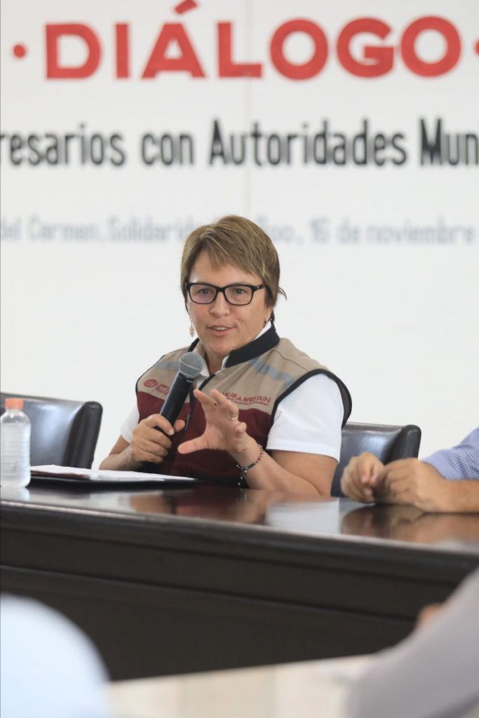 Abierto diálogo de Laura Beristain con empresarios sobre Quinta Avenida. En el Auditorio y Salón de Sesiones “Leona Vicario” del Honorable Ayuntamiento de Solidaridad, se llegó a cabo el encuentro “Diálogo Empresarios con Autoridades Municipales”, en el que participaron la presidenta municipal, Laura Beristain Navarrete, miembros del sector empresarial, regidores y servidores, quienes dieron a conocer avances de la obra, así como inquietudes y dudas acerca de la rehabilitación de la Quinta Avenida.