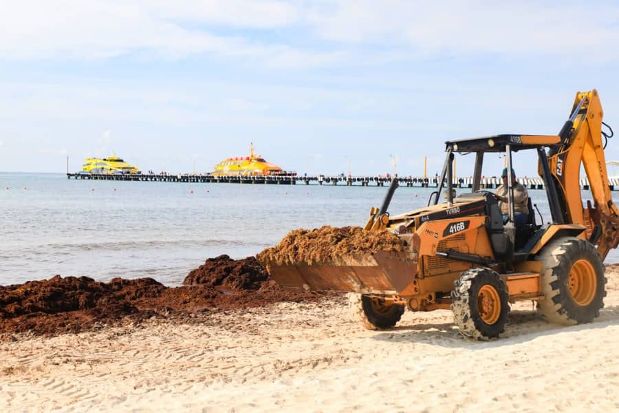 A través de la dirección de Zona Federal Marítima y Terrestre (Zofemat), durante la temporada de arribo de sargazo a la zona de costa, con apoyo de maquinaria permitida el personal mantuvo aptas las playas para su uso y disfrute, recolectando y retirando la planta acuática hasta un centro de acopio, y recuperando la arena para mantener un adecuado equilibrio en nuestro ecosistema.