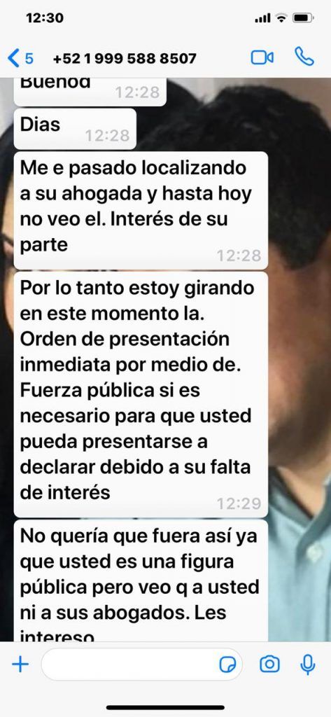 “Quiero aprovechar los micrófonos de todos para denunciar amenazas por parte de la empresa Ar-Co que lamentablemente están buscando intimidar, lo cual como ustedes saben, nosotros somos muchas organizaciones, sectores sociales, y que nuestro objetivo es la mejora de nuestro destino turístico. (…) se identifica a la persona como una persona en Yucatán, la licenciada tal, que les compartiré el nombre, del ME como si fuera una autoridad, como un ministerio público y que van a mandar un exhorto para que manden por mí y me lleven detenido, que me estaba escondiendo para que no me notifiquen, etc, etc. Cuando le hablan a mi abogada y a la abogada del CCE como tal le empieza a regañar y le dice: es que este es el mensaje somo los de Ar-Co y mi cliente, y mi cliente y lo que quiero es mandar el mensaje a Lenin Amaro, que sepa mi cliente hasta dónde va a llegar con esta situación, dígale que se calle la boca”. Denunció el presidente.