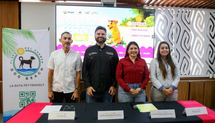 Playa del Carmen, Quintana Roo, 20 de agosto de 2025.- El gobierno de Playa del Carmen, que encabeza la presidenta municipal Estefanía Mercado, anunció en conferencia de prensa la realización del “Dog Beach Festival”, que se llevará a cabo el sábado 23 de agosto en la Plaza 28 de Julio, en horario de 5 de la tarde a 10 de la noche.