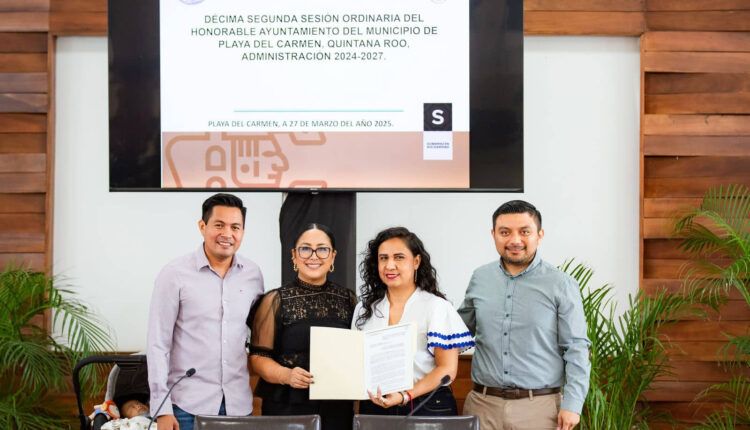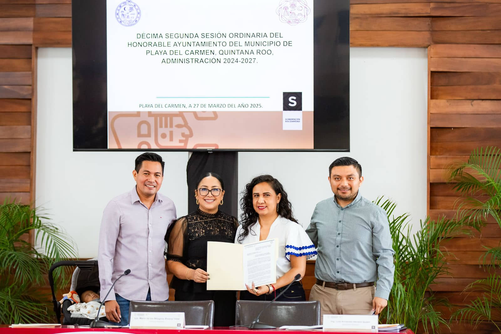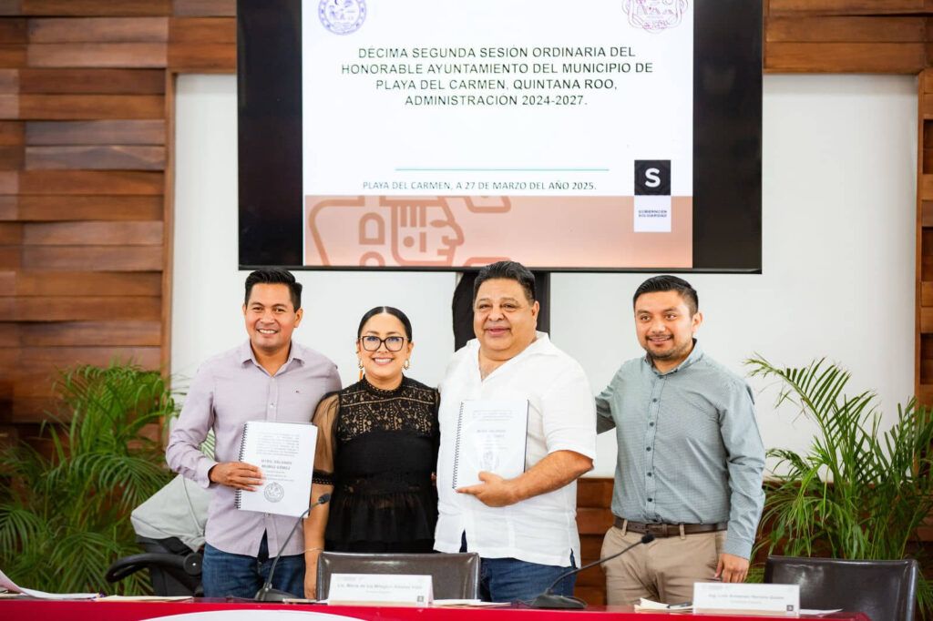 Playa del Carmen, 27 de marzo de 2025.- En sesión ordinaria, el cabildo aprobó la modificación del logotipo del ayuntamiento de Playa del Carmen, la Guía de Identidad Institucional y el acuerdo que autoriza a la presidenta municipal Estefanía Mercado a suscribir contratos de comodato a título gratuito de los bienes inmuebles con organismos descentralizados de la administración pública municipal.