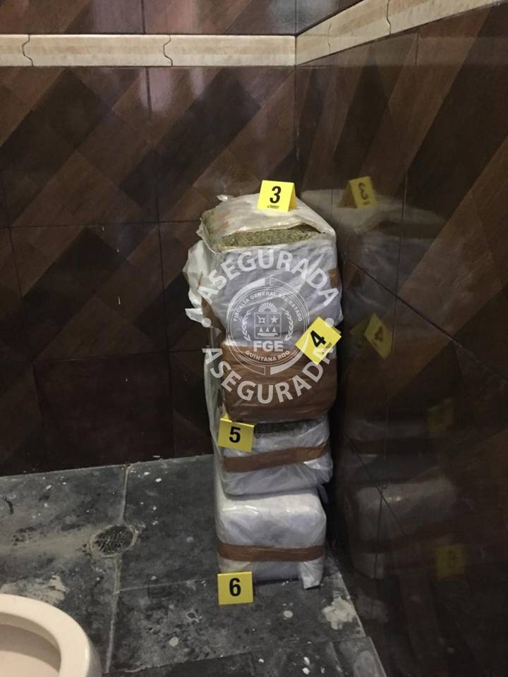 Al llegar al domiclio, la autoridad ministerial encontró los cinco paquetes embalados en forma rectangular, con un peso aproximado de 10 kilogramos cada uno, por lo que se dará vista a la Fiscalía General de la República.