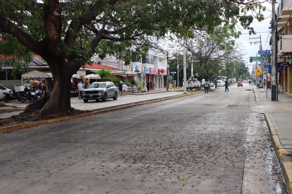 Playa del Carmen, Quintana Roo, 29 de diciembre de 2025.- El Ayuntamiento de Playa del Carmen atendió un reporte por la presencia de una sustancia resbaladiza en la vía pública sobre la avenida 30, en el tramo que comprende de la calle 22 a la avenida Constituyentes, en dirección de sur a norte, lo que representaba un riesgo para la circulación vehicular.