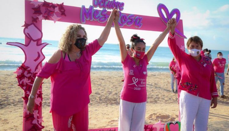 “La detección temprana con vistas a superar el pronóstico y la supervivencia sigue siendo la piedra angular del control del cáncer de mama. Ese es el objetivo de los que estamos aquí: concientizar acerca de la detección temprana. ¡Vamos a cuidarnos!”, enfatizó la Presidenta municipal, después de realizar el Lazo Solidario en la playa 88, una de las tres que cuenta con certificación Blue Flag.