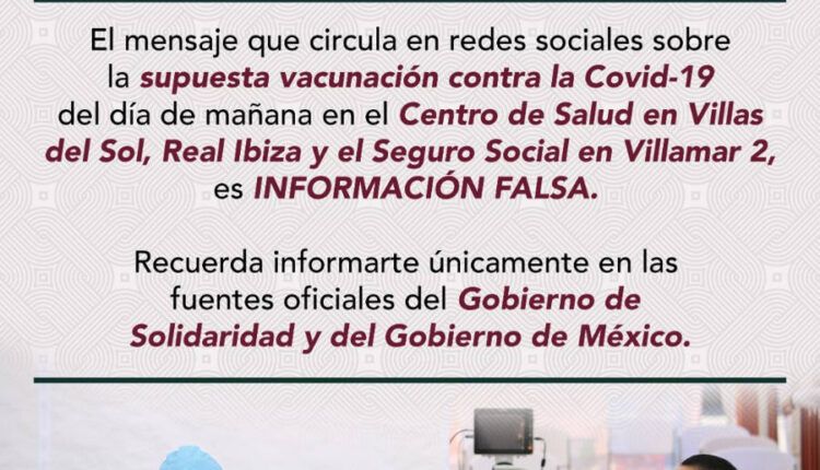 El Gobierno de Solidaridad informó que será el próximo municipio donde se aplicarán las vacunas contra la COVID-19, exclusivamente a adultos mayores de 60 años, con residencia en esta localidad; sin embargo, serán las autoridades federales y estatales quienes determinarán las fechas, horarios y metodología para la aplicación del biológico.