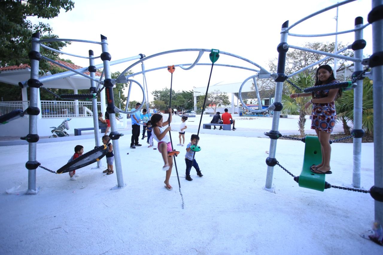 “Estamos muy felices pues llevar a mis hijos al parque me da tranquilidad, primero porque contamos con una caseta de vigilancia, con policías que están al pendiente, también disfrutamos de una cancha de basquetbol nueva y un espacio de juegos con equipo nuevo. Ahora sí disfrutamos este hermoso lugar donde convivimos con los vecinos”, puntualizó Wilma Dzib Moreno, habitante del lugar.
