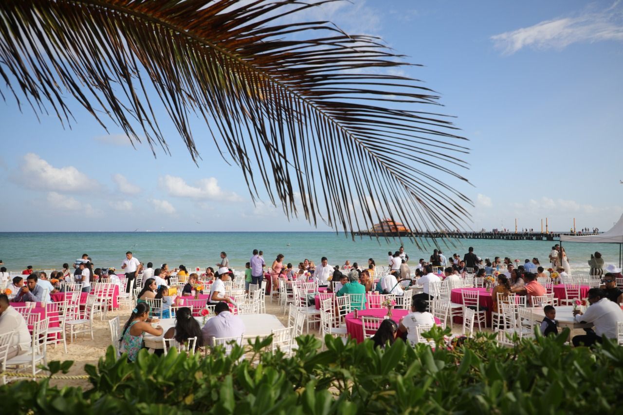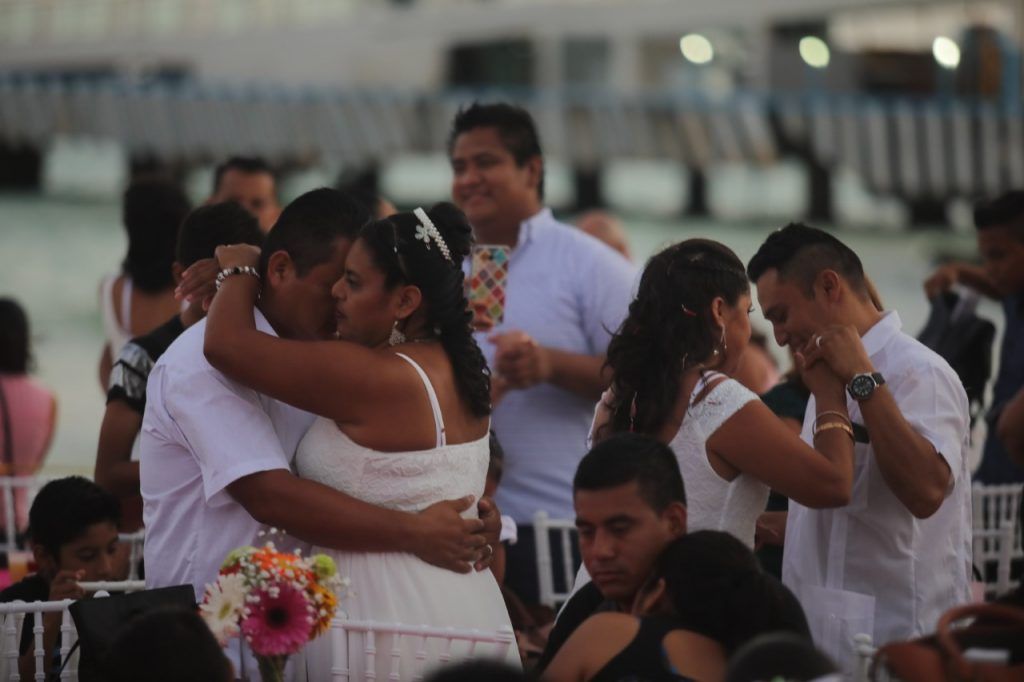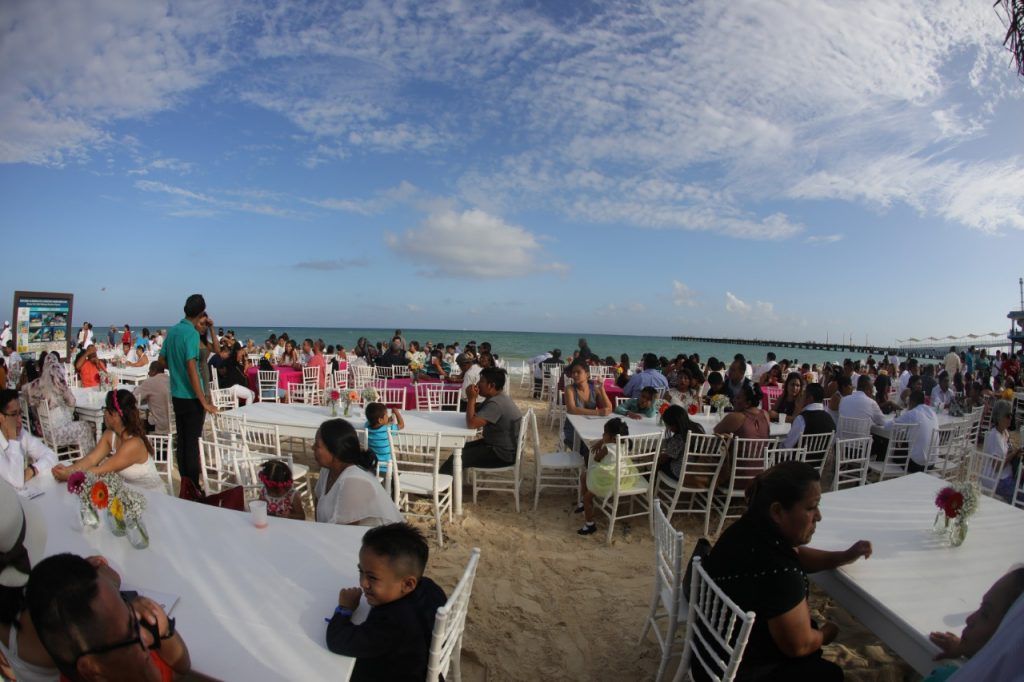 Este año, el magno evento frente al Mar Caribe fue todo un éxito ya que las parejas, quienes llegaron acompañadas por amigos y familiares, disfrutaron en grande de la fiesta que hiciera el gobierno de Solidaridad en su honor, en un lugar espectacular como es la playa que se ubica frente a la escultura del Portal Maya, frente al parque Fundadores, que sorprendió con su atardecer a los presentes, quienes estaban muy motivados al tomar la decisión de legalizar su unión.