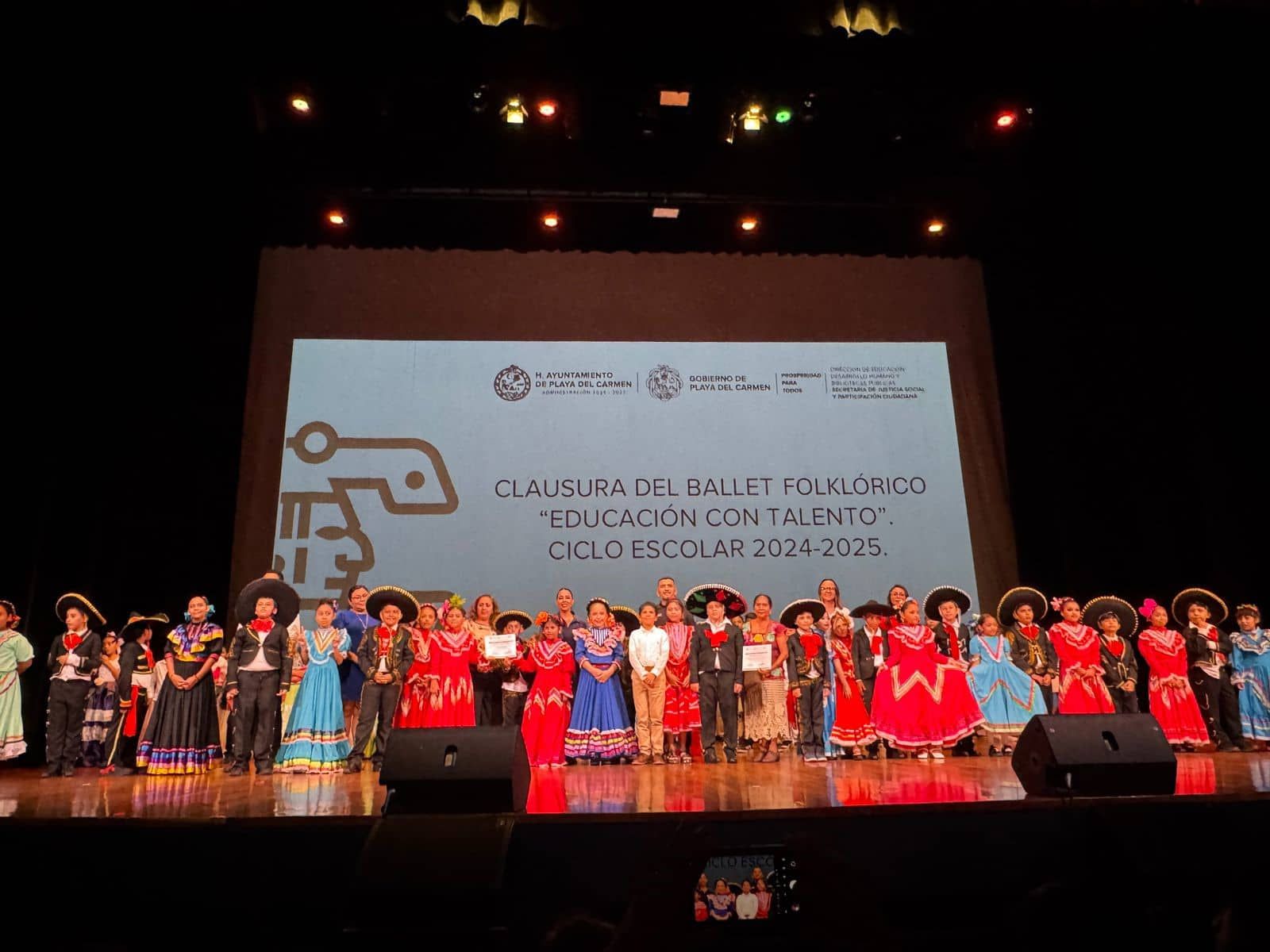 Con un vibrante festival de danzas tradicionales en el Teatro de la Ciudad “Xaman Ha”, el Gobierno Municipal que encabeza la presidenta Estefanía Mercado clausuró el programa “Educación con Talento”, correspondiente al ciclo escolar 2024–2025, beneficiando a más de 300 niñas, niños y jóvenes de diversas escuelas del municipio.