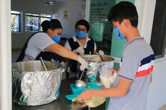 La directora del Sistema DIF Solidaridad, Mirella Díaz, informó que a través de los tres Comedores Solidarios que se ubican en Puerto Aventuras en la Comunidad Terapéutica Vive, en el CDC 28 de Julio y las oficinas del Enlace DIF Villas del Sol, se ofrecen comidas calientes de lunes a viernes.