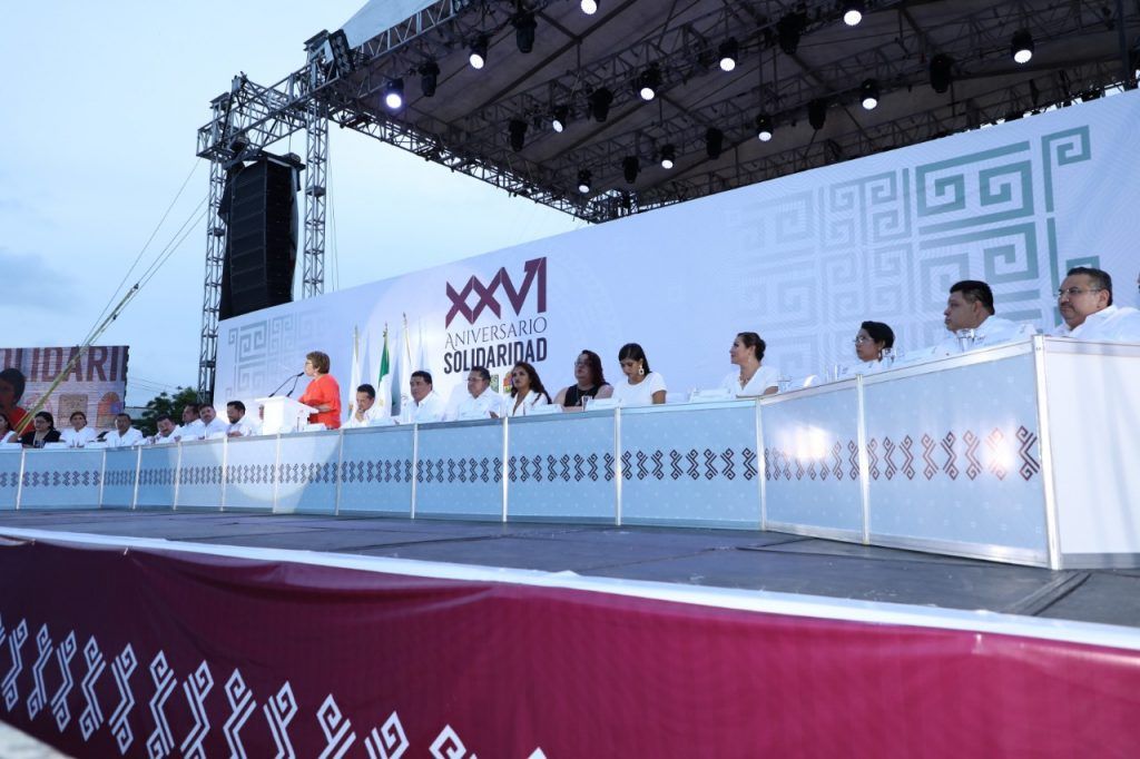 En el acto que se realizó en la Rotonda de los Caudillos Mayas, en la colonia Pedregal, la edil solidarense destacó: “ser maya es un orgullo, en cada uno de los fundadores de estas tierras se encuentra la riqueza humana de nuestra cultura; porque recordar nuestros valores, entenderlos y tenerlos de forma permanente nos crea comunidad y la identidad que sí somos”.