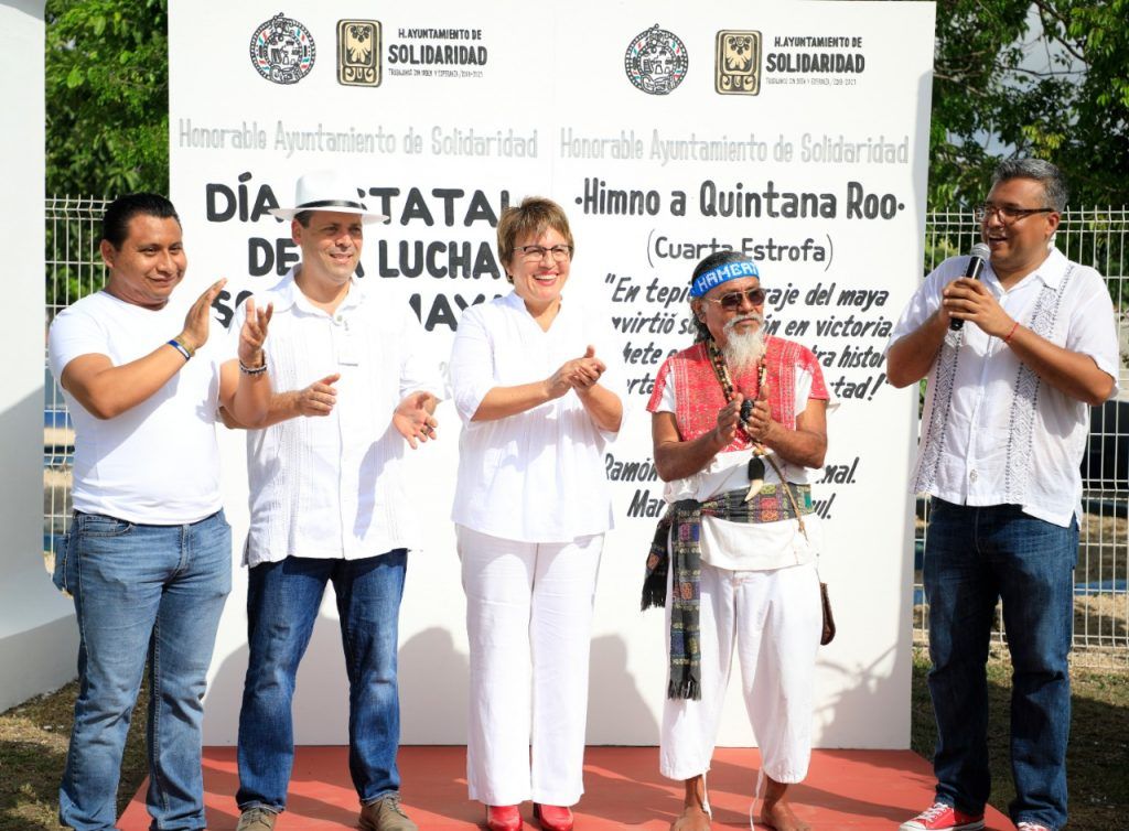 La presidenta municipal, Laura Beristain Navarrete, en compañía de integrantes de la etnia maya, encabezó la conmemoración del Día Estatal de la Lucha Social Maya en su 172 aniversario, en donde reiteró el compromiso de su gobierno de trabajar por el pleno reconocimiento de los pueblos originarios de la entidad.