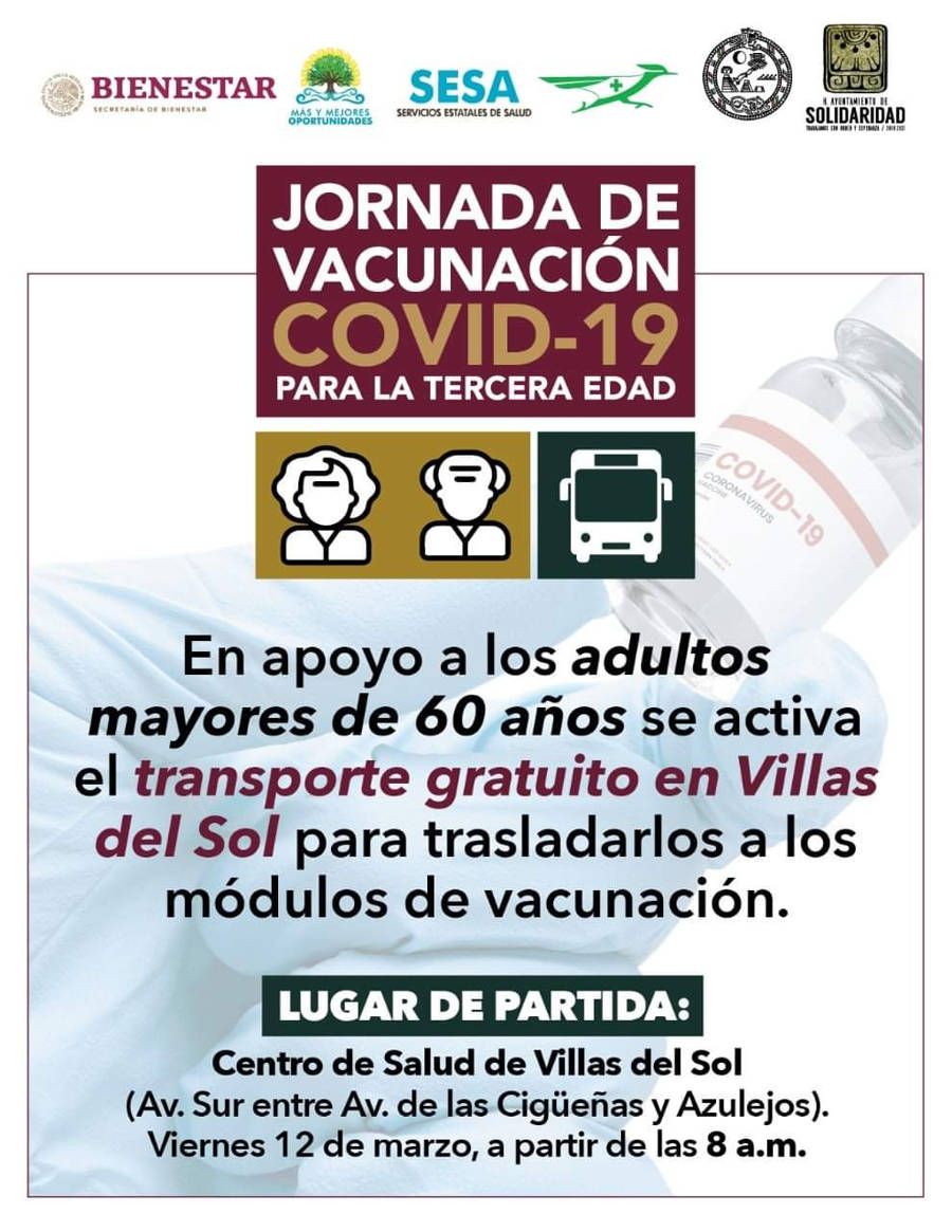 Además, se recuerda que para las personas mayores de 60 años que viven en Villas del Sol y se quieren vacunar, existe la movilidad a través de transporte gratuito para trasladarlos a los módulos de vacunación.