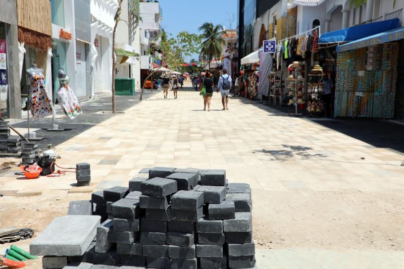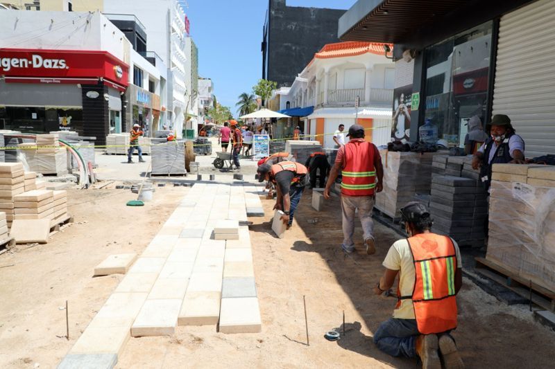En tiempo y forma continúa la modernización de la Quinta Avenida al incrementarse el suministro de baldosas y adocretos lo que permite avanzar con esta obra trascendental que beneficiará a decenas de comerciantes con la renovación de la imagen del paseo turístico más famoso de México.