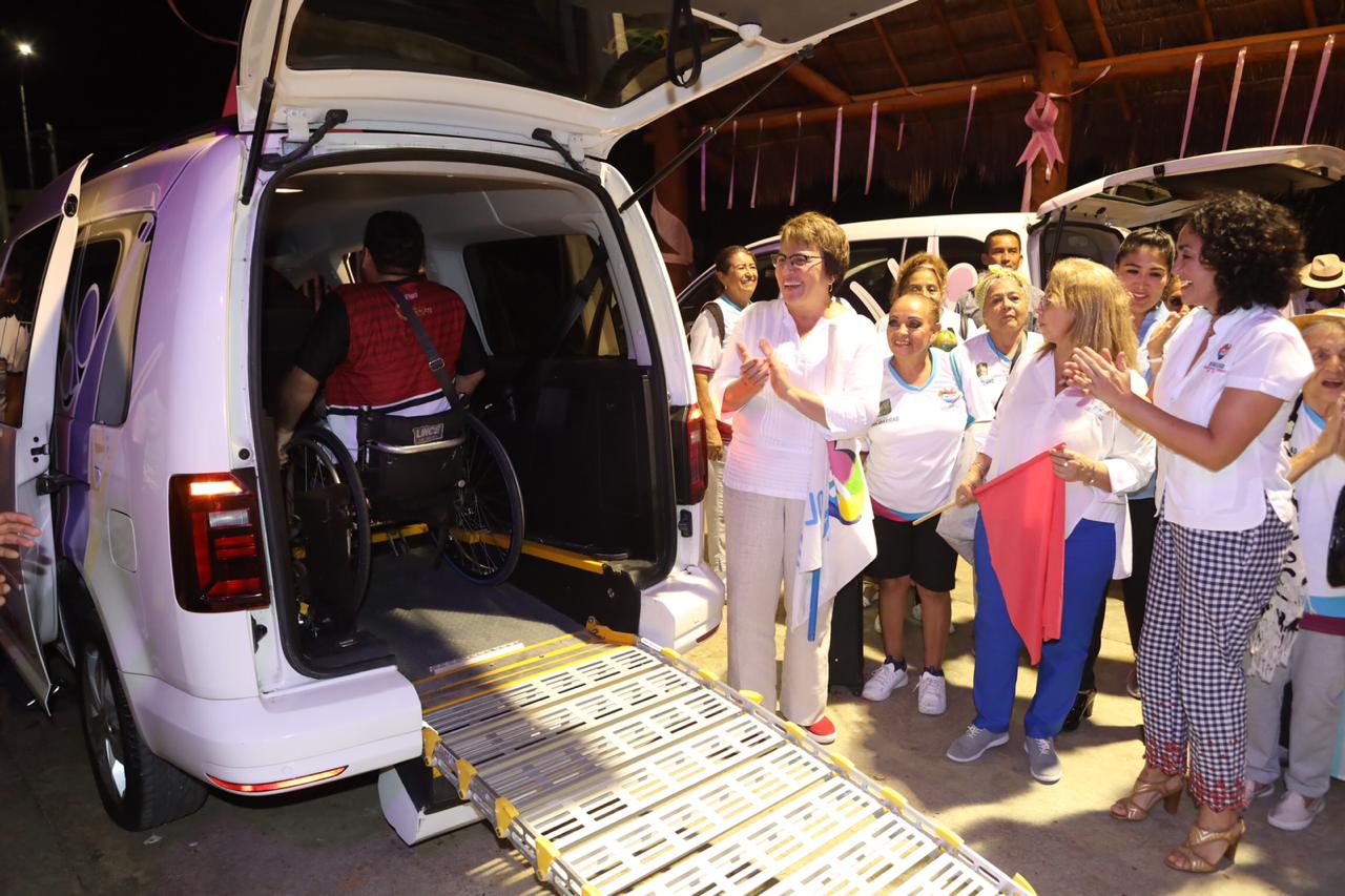 La presidente municipal de Solidaridad, Laura Beristain Navarrete, suma esfuerzos con el Sistema de Desarrollo Integral de la Familia (DIF) Municipal y Estatal, dando el banderazo de arranque del servicio de transporte inclusivo a bajo costo que se brinda a personas con discapacidad.