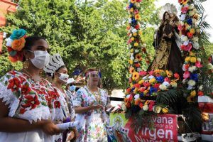 Es importante mencionar que en el caso de estos festejos religiosos, a diferencia de otras fechas, en esta ocasión, la imagen de la virgen recorrió las principales calles del municipio del 8 al 16 de julio, a bordo de un vehículo para evitar aglomeraciones, con la presencia de la reina de las Fiestas Patronales 2020, Emmily Jacqueline Barceló Cano, visitando las colonias Ejidal, Bellavista, Forjadores, La Guadalupana, El Petén, Villamar 1 y 2, Misión del Carmen, Villas del Sol, Centro, Luis Donaldo Colosio y la delegación Puerto Aventuras.