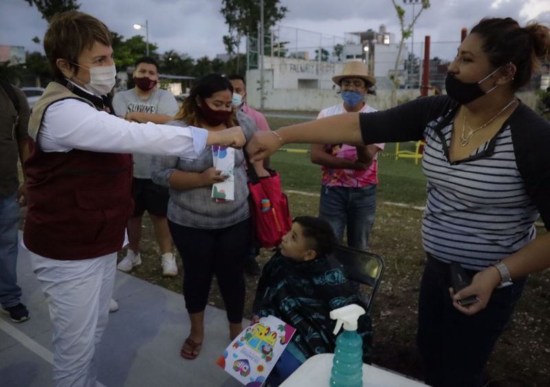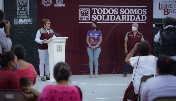 No me cansaré de decirlo: gracias a estos espacios de encuentro, gobierno y sociedad trabajamos juntos en la construcción de Solidaridad”, destacó Laura Beristain Navarrete, presidenta municipal de Solidaridad, al llevar el Programa “Todos Somos Solidaridad” a los habitantes del fraccionamiento Palmas I.