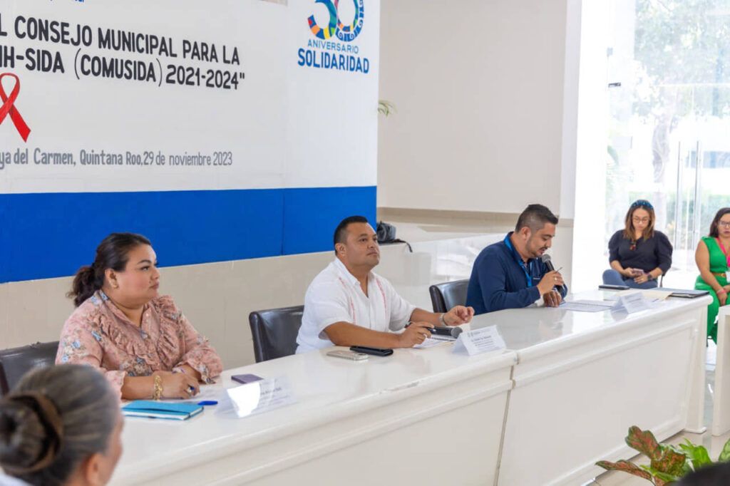 Playa del Carmen, Solidaridad, 29 de noviembre del 2023.- Durante la Cuarta Sesión Ordinaria del Consejo Municipal, presidida, en representación de la presidenta Lili Campos por el secretario del Ayuntamiento, Cecilio Puc, se presentaron los avances y acciones realizadas en cuanto a la prevención y respuesta al VIH – Sida (Comusida) a cargo de direcciones institutos y unidades del Ayuntamiento.