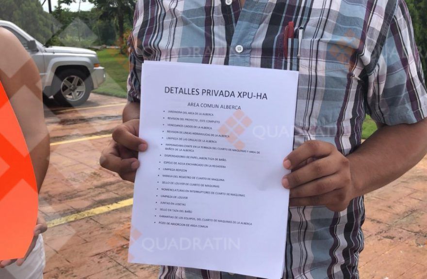 Los propietarios de Paseos de Xcacel se sienten defraudados, pues las últimas lluvias registradas desvelaron vicios ocultos en la construcción de sus viviendas. Juan Montiel, presidente del Comité de Vecinos, exigió a la empresa Desarrollos ARA, les garantice su seguridad con un condominio hecho de acuerdo al precio que lo vendieron.
