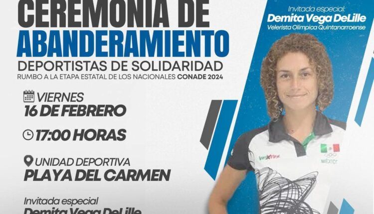Playa del Carmen, Solidaridad, Q. Roo a 15 de febrero de 2024.- Deportistas solidarenses recibirán los uniformes qué portarán en la etapa Estatal de los Nacionales CONADE 2024, por lo que el viernes 16 de febrero a las cinco de la tarde se realizará la ceremonia de abanderamiento, estará encabezada por la presidenta municipal Lili Campos y como invitada especial a la velerista olímpica quintanarroense Demita Vega, en el gimnasio Poliforum de la unidad deportiva Playa del Carmen.