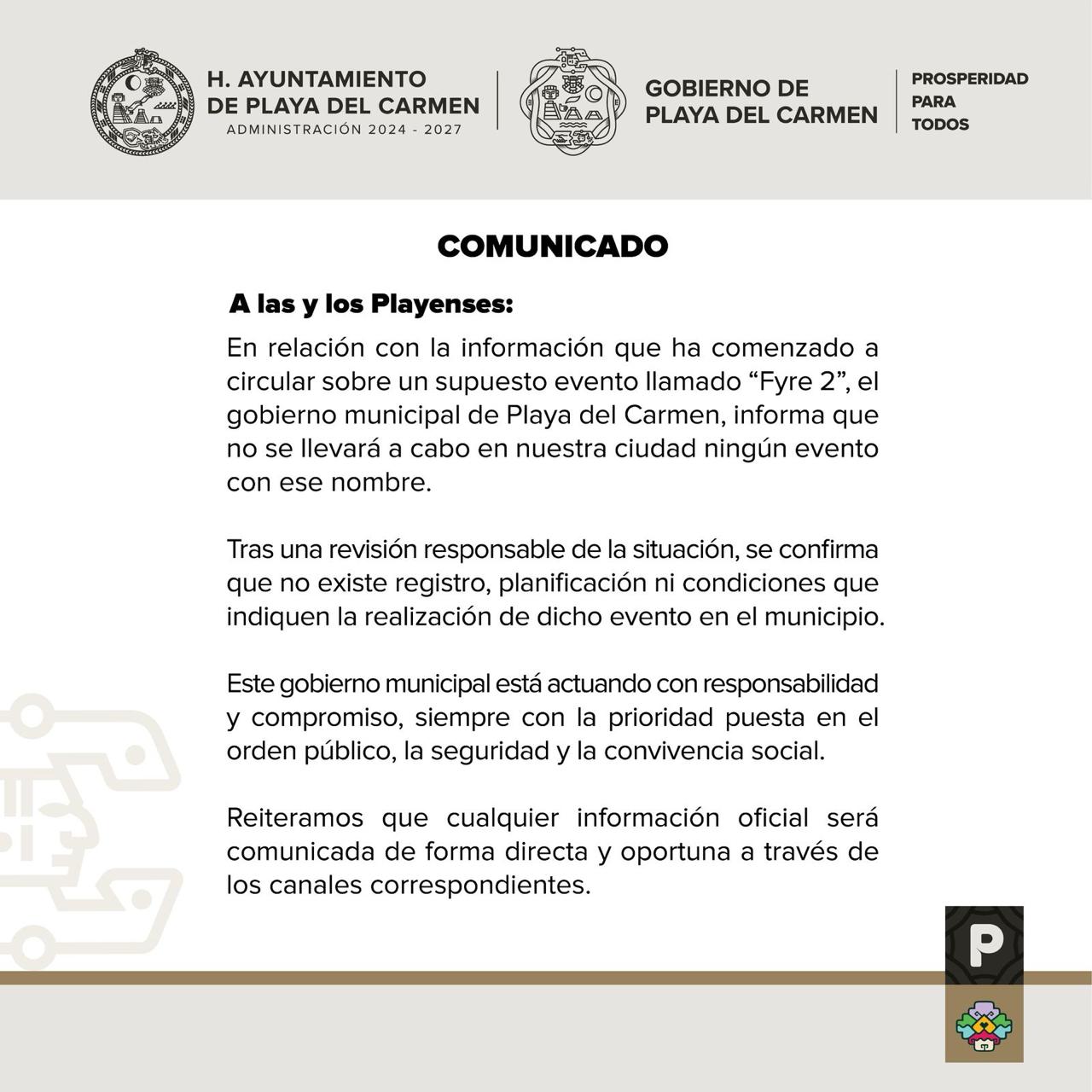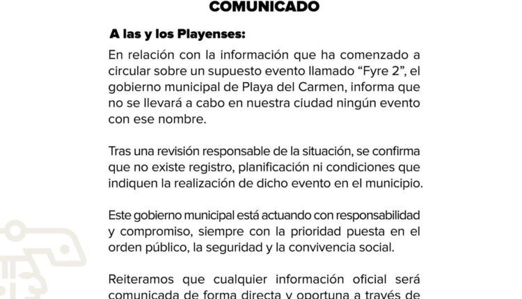A través de un comunicado oficial, el Ayuntamiento de Playa del Carmen informó que, tras una revisión exhaustiva, no se encontró ningún registro, planificación o condición que respalde la existencia de dicho evento en el municipio.