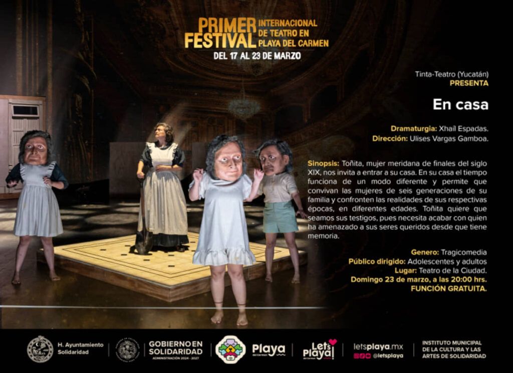 El Primer Festival de Teatro de Playa del Carmen se pondrá en marcha este lunes 17 del presente con talleres especializados, que se impartirán en la Escuela de Iniciación Artística asociada al INBAL. Y a partir del viernes 21, se presentarán varias obras en el Teatro de la Ciudad. Los interesados pueden consultar la cartelera en las redes sociales del IMCAS.