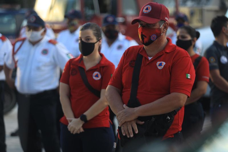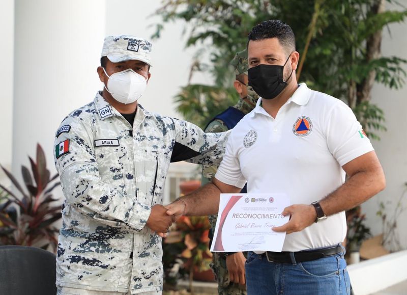 En el evento estuvieron presentes el secretario general del ayuntamiento, Alfredo Paz Cetina; el encargado del despacho de la Secretaría de Seguridad Pública y Tránsito Municipal, Jorge Robles Aguilar; el teniente Agustín Herrera Arias, primer sub-inspector de la Guardia Nacional; el teniente de corbeta, Infantería, de fuerzas especiales, Alejandro Cruz Aguayo, representando a la Comandancia del Sector Naval de Cozumel; el presidente de la asociación civil de Seguridad, Higiene y Protección Civil, Gonzalo de la Peña, así como el director de Bomberos, Eduardo Hernández Martínez, entre otros.