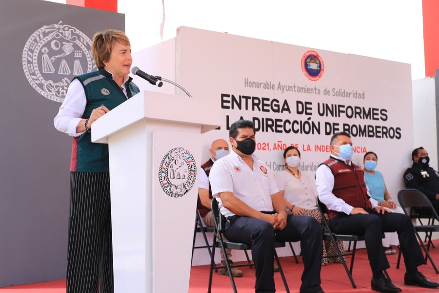“Este cuerpo heroico de bomberos de Solidaridad es de los más capacitados y profesionales a nivel nacional; la emergencia sanitaria reveló todo el potencial en mano y profesional con que contamos los solidarenses, aunque también las carencias que padecía esta corporación, que hoy se dignifica para un mejor desempeño de sus funciones”, sostuvo la Alcaldesa, acompañada del director de Bomberos, Eduardo Hernández Martínez.